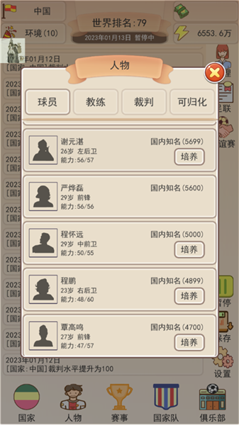 2、人物方面,比如說:球員、教練、裁判等,我們可以自由培養(yǎng)。