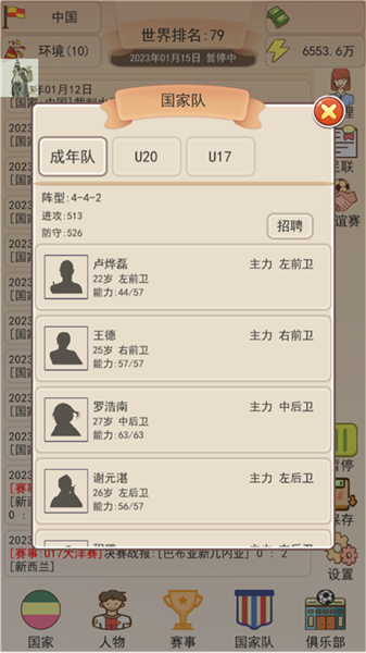 4、在國家隊界面下,我們可以自由招牌各種球員,就是因為財大氣粗。