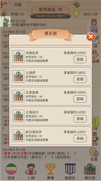 5、在俱樂部界面下,我們也可以隨心所欲的資助不同的俱樂部,還是一句話有錢。